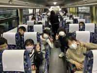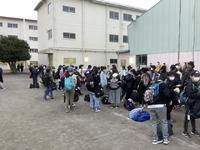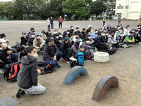修学旅行の朝です。少しずつ子供たちが集まってきています。