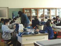 家庭科室で5年生がエプロンの仕上げをしていました。ミシンで縫い終わった子から、アイロンがけやひも通しをしていました。担任とスクールサポートスタッフで手厚く支援をします。子供達はできあがったエプロンをうれしそうにながめていました。自分で作ったものには、特に愛着がわくと思います。