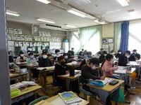 朝読書のため時計を見ながら、本を準備していました。おもしろい場面があると友達に話をしたくなるようで、自分の席でそわそわしていました。休み時間、話に花が咲きそうです。