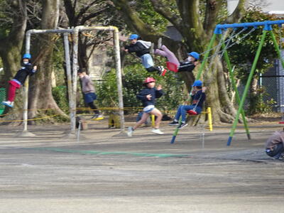 休み時間になると、カラー帽をかぶって運動場で元気に遊んでいました。