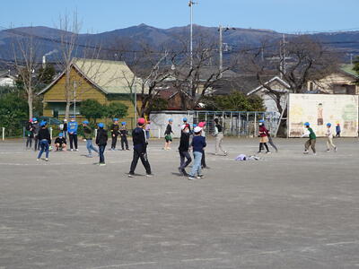 運動場を見ると、2年生が元気いっぱい運動をしていました。