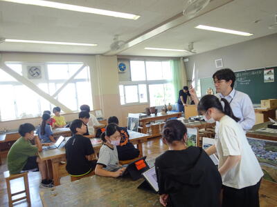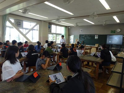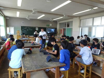 たくさんの貴重な土器を持ち込んでいただき、パネルやタブレットに入れた資料を見ながら学習を進めました。