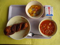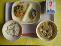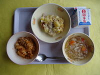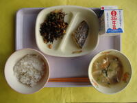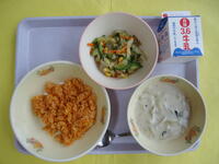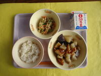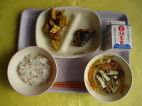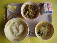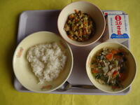 「ごはん」は、三島市内 で農薬 、化学肥料 を使用 しないで育 てられたお米です。「みしまオーガニック給食 プロジェクト」さまから を無償 でいただき、学校 の調理場 で炊 きました。