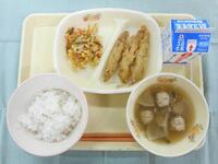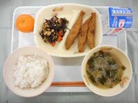 麦入りごはん 牛乳 かますフライ 三島野菜のおかか和え 三島野菜たっぷり豚汁