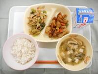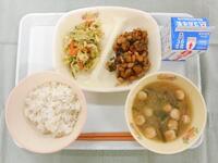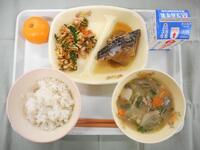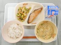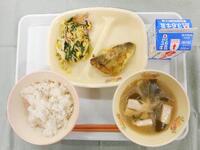麦入りごはん 牛乳 さわらのレモンしょうゆ和え 煮びたし みそ汁