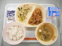 今日は6年2組が家庭科の授業で考えた献立です。旬の食材を取り入れた献立を考えてくれました。キャベツ・だいこん・葉ねぎはそれぞれ三島市の生産者さんが北小へ直接届けてくれています。三島市で育った新鮮でおいしい野菜の味を味わってくださいね。