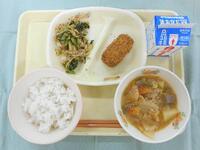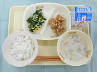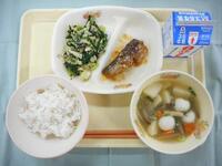 麦入りごはん 牛乳 ぶりのみそだれがけ おひたし けんちん汁