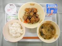 麦入りごはん 牛乳 チンジャオロース おこげ入りスープ