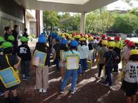 PTAのみなさん、子供たち合わせて100人くらいが集まって、PTA環境整備作業を行いました。教室のエアコンや扇風機の掃除、トイレ掃除、廊下や階段のテープ補修を分担して行いました。みなさん一生懸命作業してくださったので、予定時刻にはしっかりと作業を終えることができました。参加してくださったみなさん、ありがとうございました。
