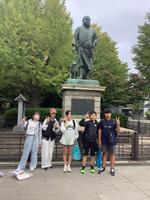 予定より少し遅れましたが、元気に到着しました。集合写真を撮って班別行動を開始します。遅れた分は、自分たちで考え、予定を組み直しているようです。
