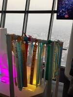 展望台からの景色を堪能しています。空は霞みがかっていますが、一面の東京の景色に感動しています。