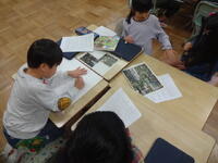 まちたんけんでインタビューしてきたことを伝えるために新聞やポスターなどにしてまとめてきました。今日はその中間発表相談会です。うまくできたから他のグループがまねしてもいい点や、困っているから相談したい点をそれぞれ出し合って、よりよい伝え方になるように意見を出し合いました。たくさんの先生方が参観していたので、最初は緊張している様子もありましたが、授業が進むと参観している先生を気にせず意欲的に発表することができていました。