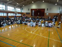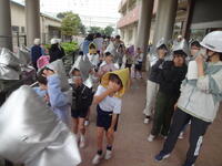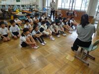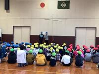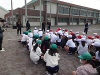 3校時に北幼稚園と合同で火災避難訓練を実施しました。「楽しい学校あいうえお」の「い」、命を守る取組です。雨天だったため、想定した火災発生場所から十分に離れている体育館へ避難をしました。北幼稚園の子供たちも含めて、みなさん「おかしも」の約束を守ってしっかりと避難することができました。