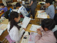 5年生が家庭科の授業の中で、自分にできる仕事について考えていました。「ごみ出し」「皿洗い」「洗濯」等、それぞれができそうなことを考えて、友達と意見交換していました。家族の一員として、積極的に家庭の仕事ができるようになるといいですね。