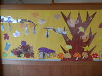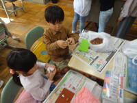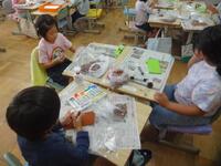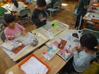 1年生が先日拾ってきたどんぐりやまつぼっくりを使って、様々なものを作っていました。紙粘土をうまく利用しながら、動物やキャラクターを作っていたのですが、中にはブランコなどの遊具で遊んでいる様子を作り出している子もいました。それぞれが、しっかりと秋で遊ぶことを楽しんでいました。できがった作品は、校内作品展WEEKで展示してありますので、来校の際にご覧ください。