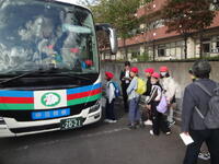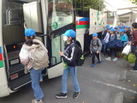 2日間の修学旅行もいよいよフィナーレです。ほぼ予定通りバスは北小学校に到着しました。バスから降りてくる子供たちの表情からは満足感が伝わってきます。
