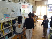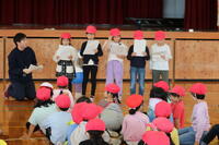 なかよしの1,2年生のところにも三島市立図書館の司書さんが来てくれました。同じように、ブックトークで「しごと」に関する本を紹介してくれました。
