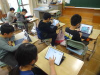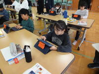 5年生は家庭科の授業で食事の必要性や、食べ物に含まれる栄養素について学習しています。今日は栄養教諭の先生から3つの食品のグループと多く含まれる栄養素について、教えていただきました。教材のシールを貼って分類を学んだあと、昨日の給食の献立についても、タブレットでグループ分けを行いました。給食には栄養素がバランスよく含まれていることがよく分かりました。