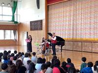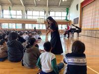 巡回音楽会が開かれ、プロの演奏家の方々の生演奏を聴きました。ヴァイオリン、チェロ、クラリネット、ピアノで奏でる美しい音色に魅了されました。子供たちの感想は、「ハンガリー舞曲第五番は聞いたことがあったので、楽しく聞けました。」「草笛ホラという曲で、本当に草笛のようなピュッという音が聞こえて面白かったです。」などがあり、音楽の世界を楽しんだ様子がうかがえました。