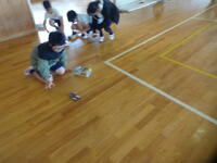 6年生がキャリア教育の一環で出前授業を行いました。子供たちの手元にあるのは「ミニ四駆」です。写真は作っているところや走らせているところの様子ですが、作る前にデザイナーさんからいろいろなお話をしていただきました。子供たちはデザイナーの仕事やデザインに込められた思いを感じ取ることができたようです。