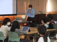 12月7日(水)、終日、(株)NEXUS様と沼津情報ビジネス専門学校の先生、学生さんにご来校いただき、4年生4クラスでプログラミング教育の授業を行いました。5・6年生は、レゴマインドストームを使っての授業でしたが、今回は各自が自分のタブレットを使って、スクラッチを体験しました。各班に学生に皆さんがついてくれたので、操作がわからないときも直ぐに聞くことができ、内容を理解することができました。