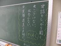 写真は、4年生が理科室で授業を行っているところです。普段の教室と違い、実験テーブルを囲んで対面の席になります。左の写真にあるように、理科室を使うときの約束があります。「話をしっかり聞く」「ふざけない」「出歩かない」実験道具を大切にする」です。実験を通して、理科に興味を持ってくれるといいです。