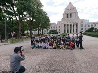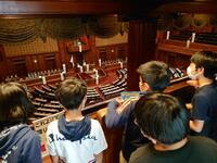 国会議事堂の内外を見学。全国各地の石が使われている建物で、厳かな雰囲気を感じていました。将来、国会議員として登壇する人はいるかな?