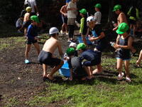 箱根の里に到着して、すぐに入所式です。職員の方からのお話も聞いて、いよいよ自然教室が始まりました。