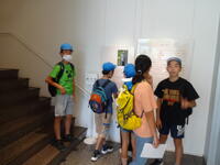 今日は暑かったので、美術館の中は涼しくて快適だったようです。持参した水筒の他にも、途中で飲み物を購入できるように全員が150円を持って行きました。自動販売機で買っている子もいました。半日歩いて、学校に着いたときはみんな疲れてヘトヘトの様子でした。