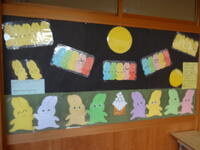 現在の図書室前の掲示物は、広報みしまでも紹介された夏の花火から9月のお月見バ-ジョンになっています。これは、北っ子サポーターの図書室応援隊の皆さんが作成してくださっています。