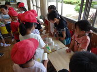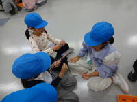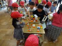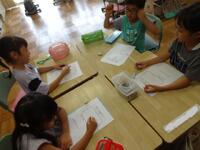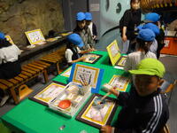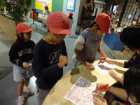 はじめに、ワークショップでスピンボール作りを行いました。うまくできると、固定されたビー玉が上下に動いているように見えるというものです。次に、2つのグループに分かれて、体験館どんぶらとプラネタリウムを楽しみました。体験館どんぶらでは、スタンプラリーをしたり、遊具や展示物で学びながら遊んだりしました。「時間が足りない」という声が出るほど充実した時間になり、みんな大満足の笑顔で帰ってきました。