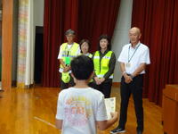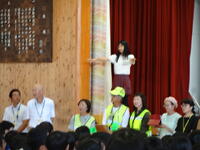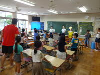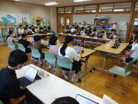 予想外の暑さで、体調を崩した子がいたり予定より遅れてしまった班があったりしましたが、全員が学校に到着して、終わりの会をランチルームで行い、代表者が気付いたことや感想を発表しました。