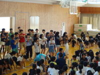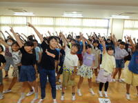 飯ごう炊さんの片付けが終わると、お楽しみの時間「ダンスパーティー」の始まりです。各クラス、それぞれが練習してきたダンスを披露します。最後に全員でポケダンスを踊って大盛り上がりでした。