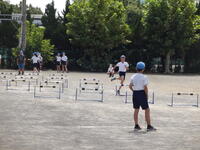6年生が、運動場で「ハードル走」を行っていました。昨日までの涼しさから一変、今日は気温も上がってかなり暑くなっていましたが、しっかりと水分補給しながら元気に走っていました。