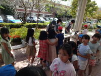 芝生広場で昼食です。ウォークラリーでお腹はペコペコでしたから、いつも以上にお弁当がおいしかったです。朝早くからお弁当の準備をありがとうございました。