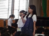 4年生が発表会に向けて合唱の練習を学年で行いました。2つの音楽室に分かれて練習した後、第1音楽室に全員で集まって合わせます。音楽の先生からの助言を受け、少しずつ良くなってきています。最後は表情にも気を配りながら歌っていました。本番が楽しみですね。