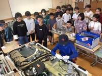 9日(水)トヨタスクール東富士の方々による出前授業がありました。自動車製造工程の説明の後、実際に、車両生産体験と工具、保護具の触手・着手体験を行いました。実際に使っている部品や保護具の前に、大喜びの子供たちの姿がありました。本物に触れる貴重な体験となりました。