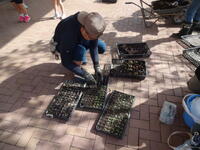 今日は花壇ボランティアさんが、発芽した芽をセルトレイから育苗用のポットに植え替える作業を行ってくれました。小さな芽を丁寧に1つずつ植え替えるのは根気のいる作業です。ボランティアさんのおかけで、たくさんの植え替えをすることができました。いつも本当にありがとうございます。