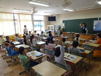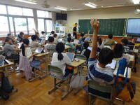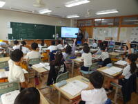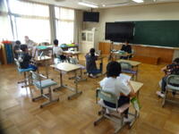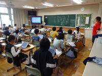 5年2組で研究授業を行い、先生たちが授業参観しました。