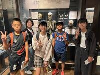 最初の見学地「国立科学博物館」です。外にある大きなクジラの前で学級集合写真を撮ってから、班別で中に入りました。中はとても広く、全部を見て回るのは難しいので、ポイントを絞って見学しています。