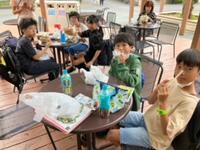 楽しかった自然教室もいよいよ最後の退所式を迎えました。2日間の思い出をみんなで振り返り、所員の方へお礼を伝えました。お土産になる思い出がたくさん作れた2日間だったと思います。最後の記念写真も満足感でいっぱいでした。