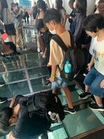 スカイツリーです。スカイツリーグループで行動しています。真下が見えるガラス床の上でも怖くはないようですね。そろそろ疲れが見えてきたでしょうか・・・。