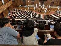 国会議事堂へ到着しました。ニュースなどで見ることはあっても、日頃はなかなか来られない場所です。今日は本会議場に座らせてもらうことができました。社会科の学習と関連付けて、しっかりと見学することができました。