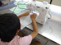 11,12組の5年生が、家庭科室でミシンを使ってぞうきんを縫いました。最初は操作方法を先生から教わりながら恐る恐るといった感じでしたが、慣れてくと器用に縫い進めることができるようになっていました。