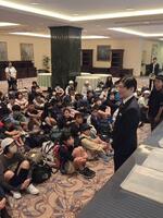ほぼ時間通りにホテルに到着です。すぐに実行委員さんの進行で「入館式」を行いました。すてきなホテルで、ゆっくりと休めそうですね。