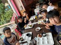 いつもと違うランチルームでの社会科の授業で、授業をする先生も子供たちも緊張した様子でした。でも、グループでの話し合いが始まると、調べたことをしっかりと友達に伝え合い、それを踏まえて、日本の米の魅力について考え交流することができました。みなさん緊張はしていたけれど、しっかりと学びを深めることができたようです。