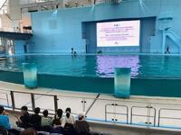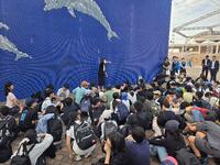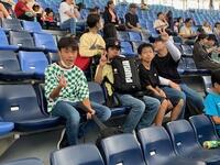 2時半からショーが始まるので、早めに席についてスタンバイしている面々もいました。ふれあいラグーンではエイやリクガメと触れ合い、生き物の感触に驚いていました。