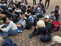 修学旅行出発の朝です。いつもより相当早いのですが、6年生はみんな元気に登校してきて、予定の時間前に集合が完了していました。順調な滑り出しで幸先がよいですね。実行委員進行による出発式では、目当てを確認し、楽しい旅行にするための気合いも入れました。バスに乗っていよいよ2日間の修学旅行、東京に向けて出発しました。