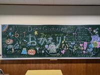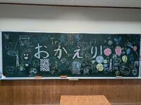 昨日修学旅行から帰ってきた6年生が本日登校すると、教室の黒板にいっぱいのメッセージが。これは、5年生が6年生のために用意してくれた「おかえりなさい」のメッセージです。実は、5年生が自然教室に出かけたときに6年生から同じようにメッセージをもらったお返しなのです。これを見た6年生たちはとっても喜んでいました。「もったいないから消したくない」とみんな言っていました。(授業ができないので泣く泣くけしますが・・・。)