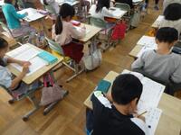 2年生が書写の時間に、コンクールに出す作品の練習をしていました。本番では消しゴムで消して書き直すことができません。時間はかかってもゆっくり丁寧に書く練習になっていました。みんな静かに手元に集中して取り組んでいました。